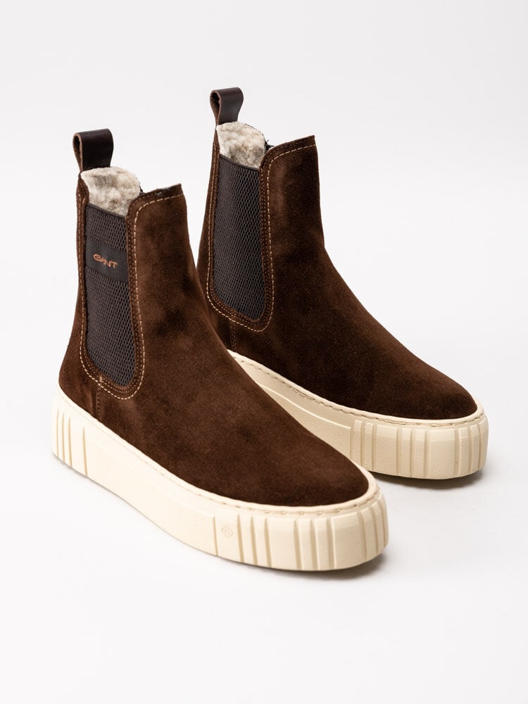 • Gant Footwear - Snowmont - Mörkbruna ullfodrade chelsea boots i mocka