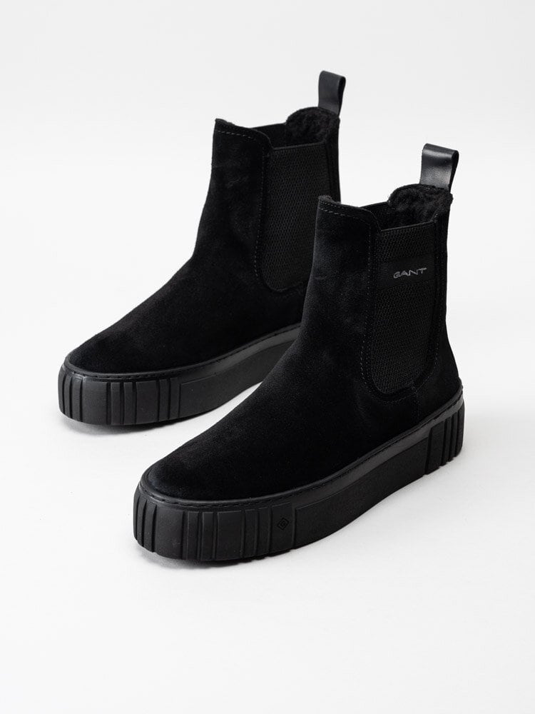 • Gant Footwear - Snowmont - Svarta ullfodrade chelsea boots i mocka