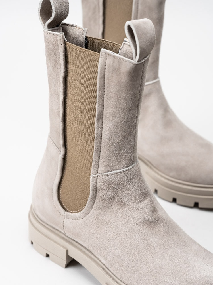 Beige höga boots i mocka från Mjus. Coola boots att använda vid många olika tillfällen.