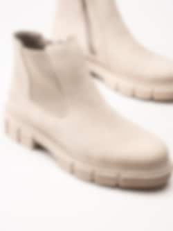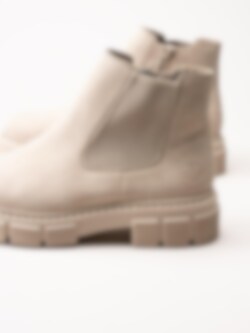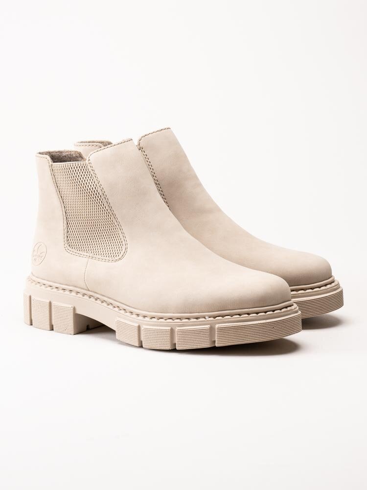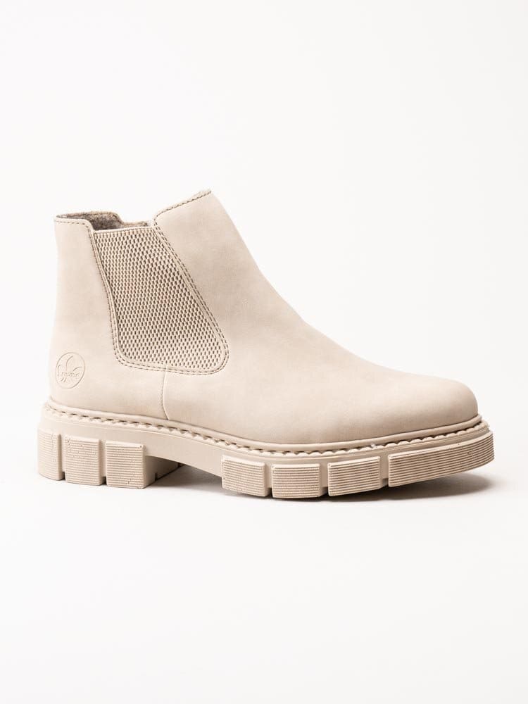 Beige chelsea boots från Rieker. Piffa upp din outfit i höst med Riekers resårboots. Foder och innersula i filt. Yttersula i syntet med en platåhöjd på ca 3 cm och klackhöjd på ca 4.5 cm.