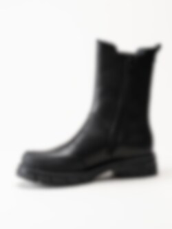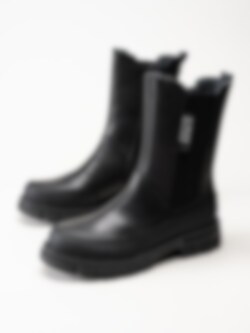 Svarta höga chelsea boots i skinn från Rieker. Snygga höga boots med resår på utsidan, dragsko på skaftkant och dragkedja på insidan för enklare på- och avtagning. Skönt foder och vadderad innersula i filt. Skyddande kant runt hela bootsen. Tuff yttersula för en cool look med ett grovt mönster för ett bra grepp mot underlaget. Perfekta tillskott i skogarderoben!