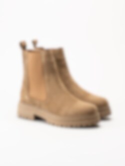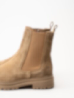 Beige chelsea boots i mocka från Rosa Negra. Klassiska boots med rund tå, resårparti på utsidan, dragkjedja på insidan och hälflik som underlättar vid på- och avtagning. Insidan är fodrad med mjuk textil och innersulan i skinn ger skön komfort hela dagen.