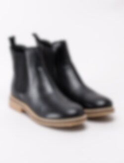 Svarta boots från Rosa Negra, tillverkade i skinn. Foder i textil och innersula i skinn. Klassiker som håller år efter år. Den markanta ljusbruna sömmen längs med sulan ger en fräsch och sportig känsla till denna favorit. Resår i sidor och praktisk hälla baktill underlättar på och avtagning. Kombinera med ett par jeans för en relaxed outfit.