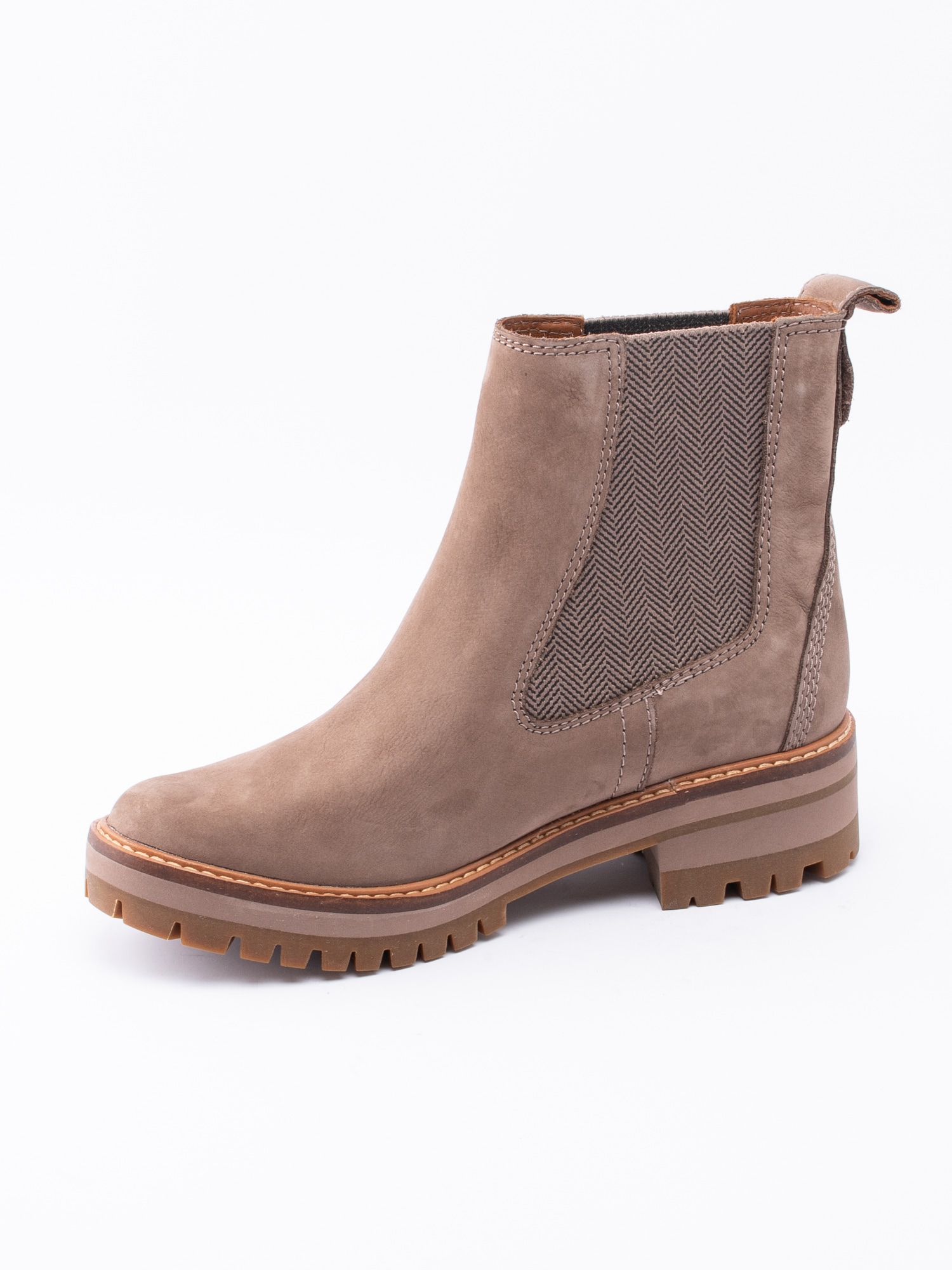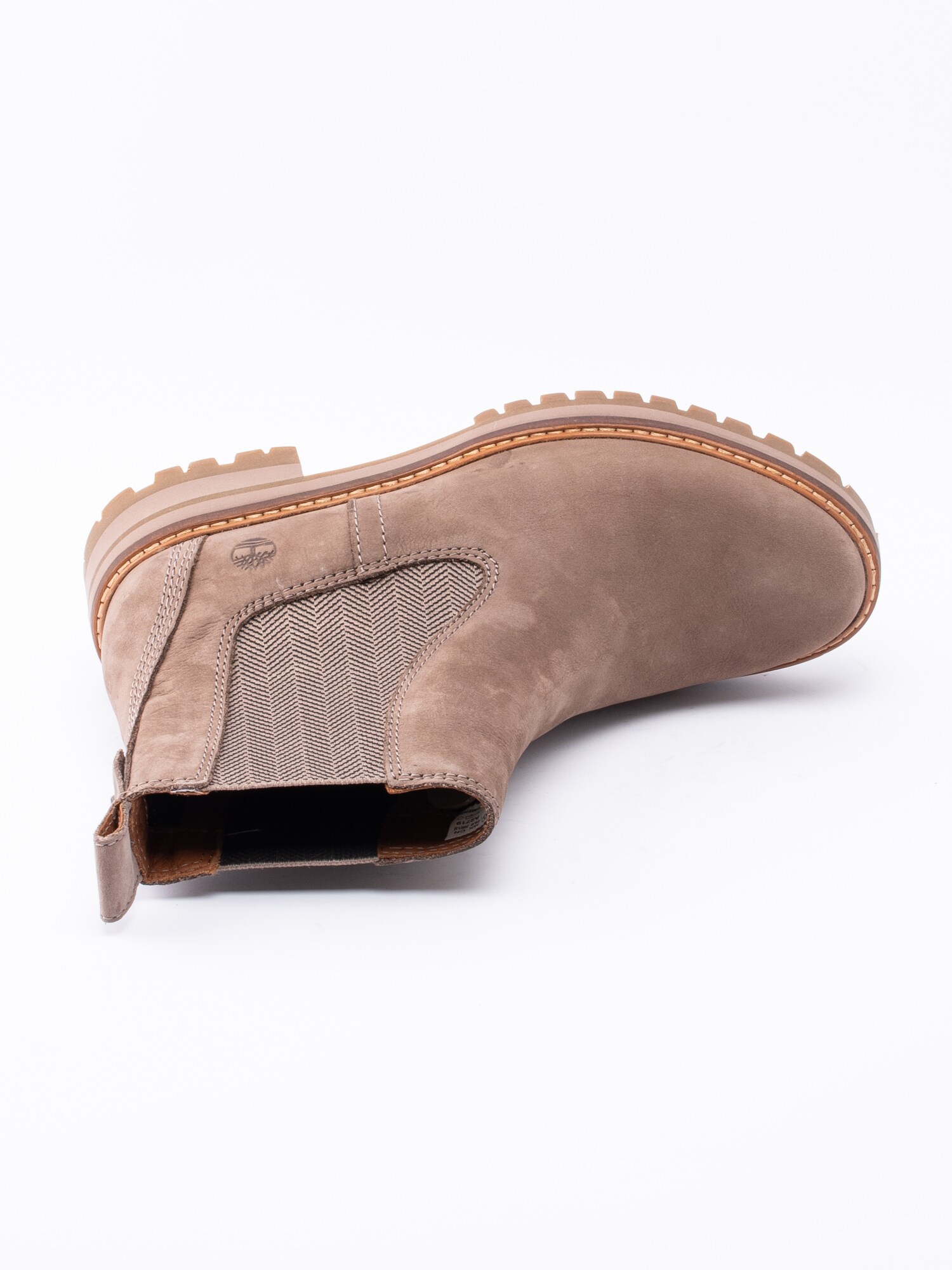 Chelsea boot Courmayeur Valley från Timberland är en beige resårkänga i nubuck. Utrustad med Ortholite innersula för ökad komfort. Resår på in- och utsidan för lätt på- och avtagning. Hälla på skaftkant som hjälpmedel vid påtagning. Präglad logga på utsidan av bakparti. Brun läderrand med ljus söm längs sulkant. Foder och löstagbar innersula i textil. Klack på ca 4.5 cm med platå på ca 2.5 cm. Beige yttersula i gummi med grovt mönster och logga.