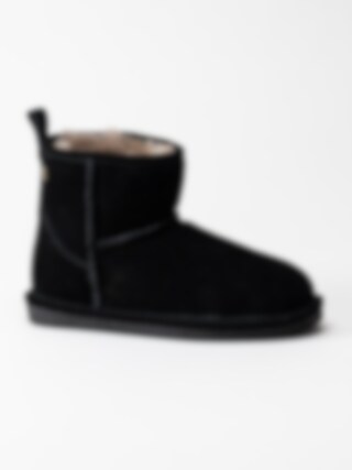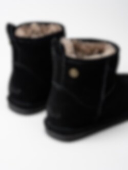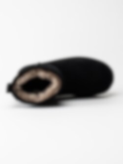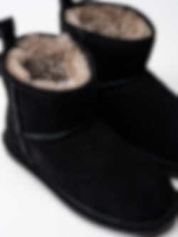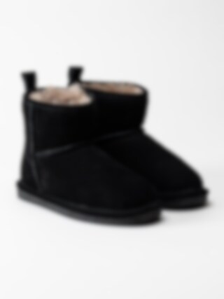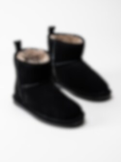 Svarta fårskinnsfodrade boots i mocka från Axelda. Ankelhöga varma boots som håller dina fötter varma. Skorna passar bra både inom och utomhus. Gummisula med EVA membran