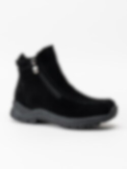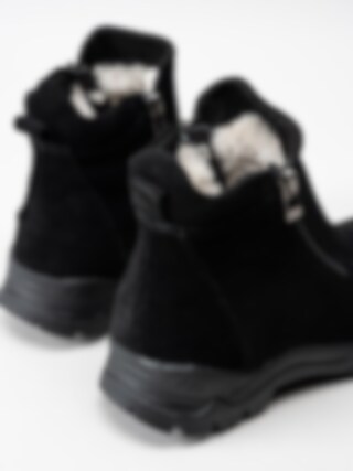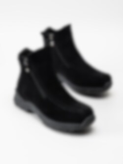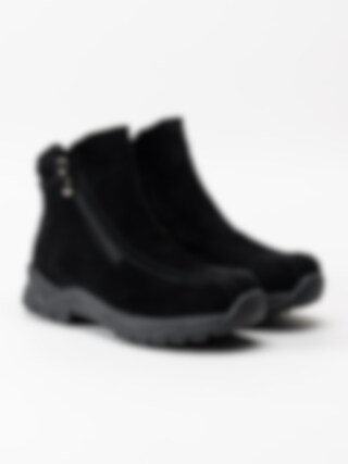 Svarta fårskinnsfodrade boots Timor Studs i mocka från Eskimo. Varma boots med mjukt foder samt löstagbar innersula i fårskinn. Med dubbar för optimalt grepp på hala väglag.