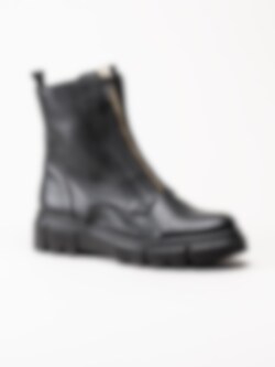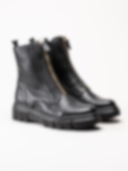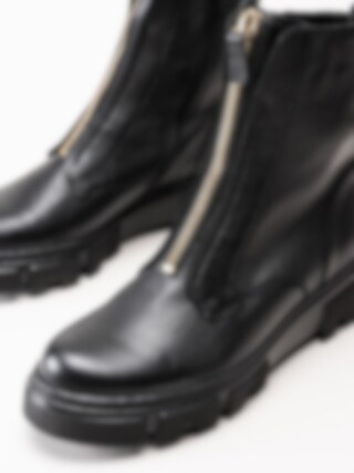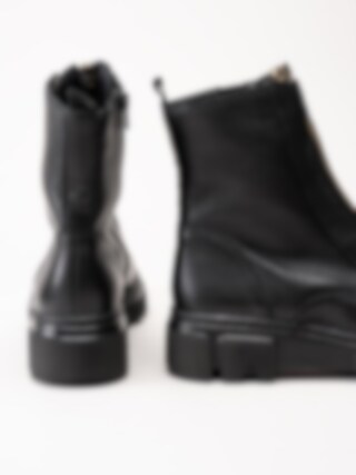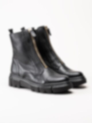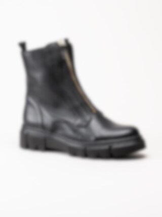 Svarta boots med frontzip från Gabor. Ett par trendiga boots i skinn med dekorativ öppningsbar dragkedja i guldfärg framtill. Dragkedja i svart på insidan vilket gör det väldigt enkelt och smidig vid av- och påtagningen. Mjukt foder i fleece och löstagbar innersula i textil för skön komfort. Tuff yttersula i syntet med grovt mönster undertill för ett bättre grepp. Snygg boots som du inte vill vara utan!