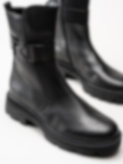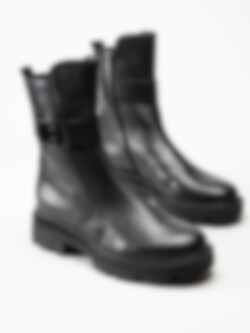 Svarta höga boots i skinn från Gabor. Ett par fina varmfodrade boots med snyggt dekorspänne på utsidan. Dragkedja på insidan för lättare av- och påtagning. Foder i mjuk fleece och vadderad löstagbar innersula i textil för skön komfort. Yttersula med kraftiga räfflor för ett bra grepp som ändå är mycket lätt. Riktigt snygg högre boots som passar till bla de lite kortare byxorna.