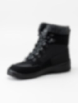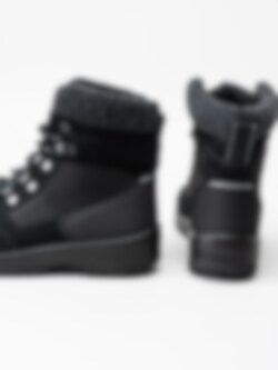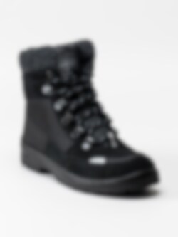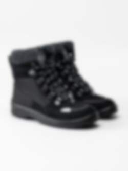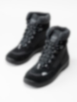 Svarta fodrade vinterboots Tuisku Black från Kuoma. En varm och lätt vinterboot tillverkad i en kombination av mocka, textil och syntet, utvecklad för att klara kyliga dagar med hög komfort. Det mjuka fodret i teddy pile ger en omfamnande värme, medan den löstagbara innersulan i filt gör det enkelt att vädra eller byta ut sulan vid behov.