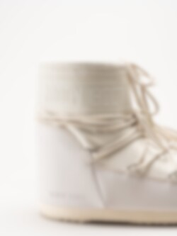 Modellen är ambidexter, vilket innebär att båda skorna kan bäras på valfri fot. En präglad logopanel och metalldetaljer i silver för de dekorativa, korslagda snörena och dragskon upptill förstärker den ikoniska looken. Det unika flerskiktsfodret av mjukt skum formar sig efter foten efter några timmars användning och ger en personlig passform som känns både trygg och bekväm. För bästa resultat rekommenderas att välja en storlek upp, till exempel EU 39/41 om du normalt bär EU 38. Moon Boot Icon Low Cream Rubber är en perfekt balans mellan innovativ komfort och modern estetik, en ikon som står stadigt oavsett vart du är på väg.