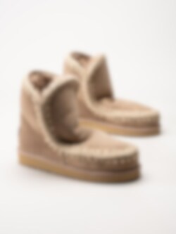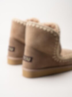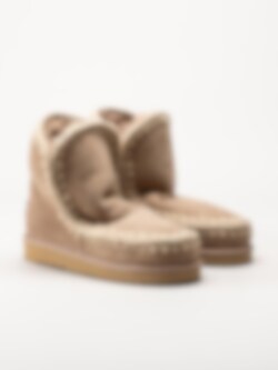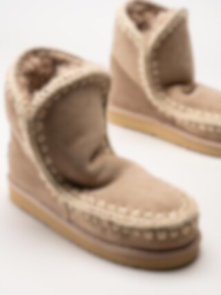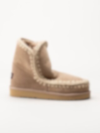 Beige fodrade vinterstövlar Eskimo 18 i mocka från Mou Eskimo. Handgjorda vinterskor med varmt skönt fårskinnsfoder och handvirkade detaljer i ull. Dessa skor är idealiska för vinterförhållanden och håller fötterna varma under kalla dagar. Trendiga vinterboots som passar lika bra till avslappnade jeans som till klänning.