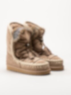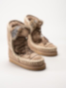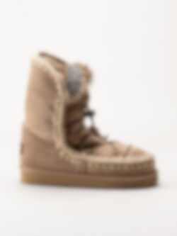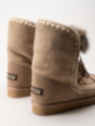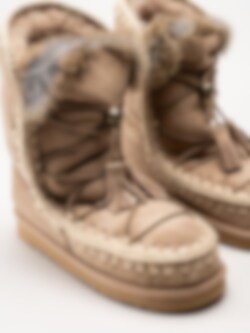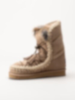 Beige fodrade vinterstövlar Eskimo Dream Catcher i mocka från Mou Eskimo. Handgjorda vinterskor med varmt skönt fårskinnsfoder, lädertofsar och detaljer i äkta päls. Dessa skor är idealiska för vinterförhållanden och håller fötterna varma under kalla dagar. Trendiga vinterstövlar som passar lika bra till avslappnade jeans som till klänningar.