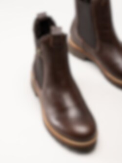 Yttersulan i naturligt gummi är flexibel, slitstark och ger bra grepp. Skinnet är behandlat med vattentätt silikon och sömmarna är tejpade för att hålla fötterna torra i blött väder. En stilren och varm modell perfekt för höst och vinter.