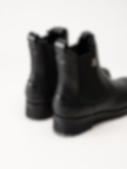 Yttersulan i naturligt gummi är flexibel, slitstark och ger bra grepp. Skinnet är behandlat med vattentätt silikon och sömmarna är tejpade för att hålla fötterna torra i blött väder. En stilren och varm modell perfekt för höst och vinter.
