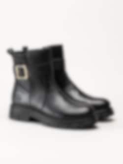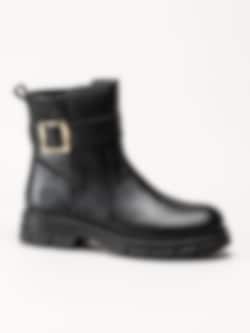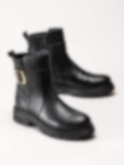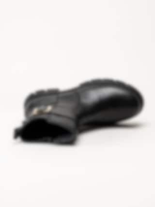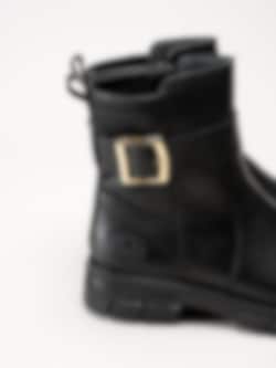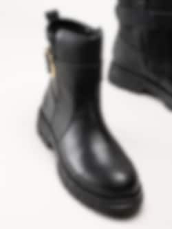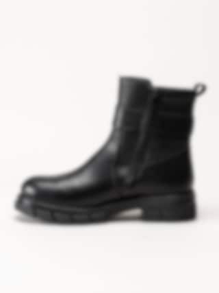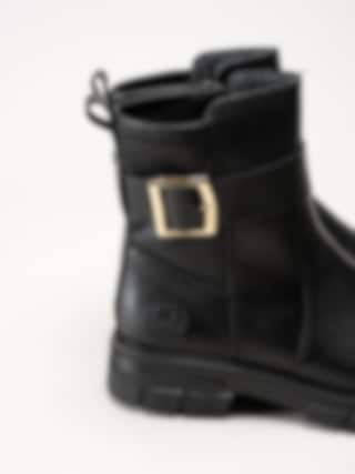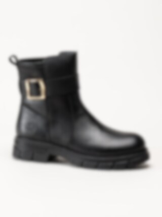 Dragkedjan på insidan gör bootsen enkla att ta på och av, och det dekorativa guldspännet på utsidan adderar en elegant detalj. Yttersulan i gummi med mönstrad design ger bra grepp på olika underlag, och hälfliken gör dem lätta att hantera. Utrustade med Rieker Antistress-teknologi för extra lätthet och flexibilitet i steget.