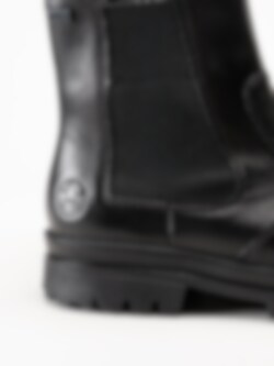 Svarta fodrade boots i skinn från Rieker i färgen Black. Varma och praktiska vinterboots tillverkade i mjukt skinn med ett värmande teddy pile-foder som håller fötterna sköna även under kalla vinterdagar. Den löstagbara innersulan i samma material ger extra komfort och isolering, medan yttersulan i gummi erbjuder bra grepp och stabilitet på olika underlag. Bootsen är utrustade med Riekers Antistress-teknologi för en lätt och flexibel känsla, samt RiekerTEX-membran som gör dem vattenavvisande och samtidigt andningsbara. De har OC-systemets utfällbara broddar för säkert fäste på isiga och hala vägar - ett verktyg för att fälla ut broddarna medföljer. Modellen har dragkedja på insidan för enkel av- och påtagning samt resår på utsidan som ger extra rörelsefrihet och bekväm passform.