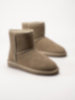 Beige fodrade boots i mocka från Rugged Gear. Ankelhöga ullfodrade boots som håller dina fötter varma under kalla dagar. Mockan är behandlad som gör skorna vattenavvisande, bra att tänka på är att kontinuerligt spraya med impregneringsspray. Trendiga boots tiil höst- och vinterdagar.