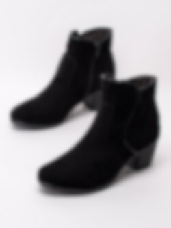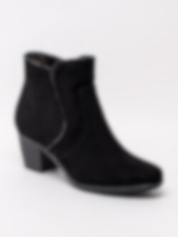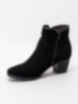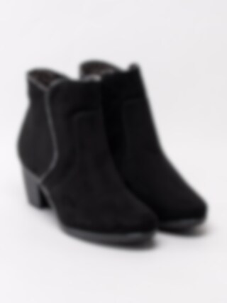 Svarta boots från Jana Softline, tillverkade i textil. Dessa boots har en bekväm läst och extra volym i foten. Foder och innersula i textil. Samt en stötdämpning i klacken för komfort hela dagen. Dekorativ rundad ovandel ger denna modell en feminin look. Perfekt till kontoret och festen.