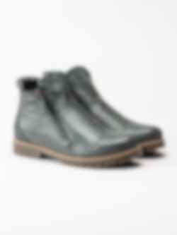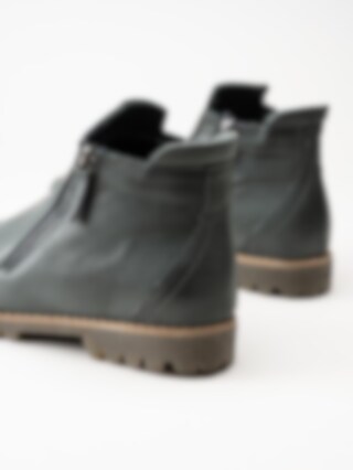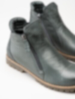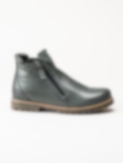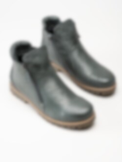 Grå gröna boots i skinn från Charlotte of Sweden. Skorna har vadderat textilfoder. Löstagbar innersula i skinn. Yttersula i syntet.