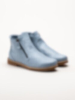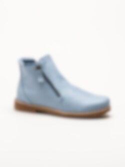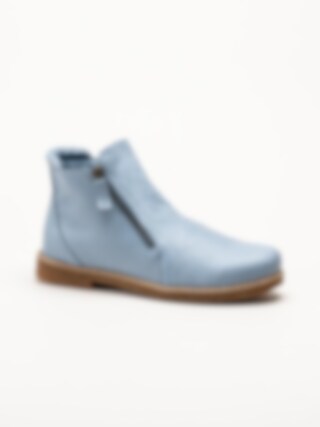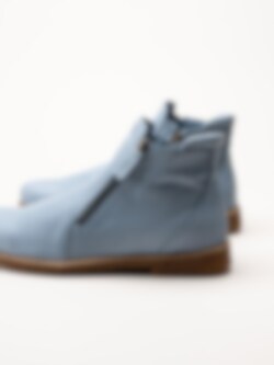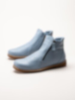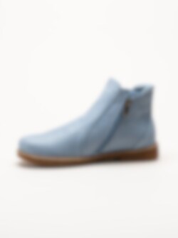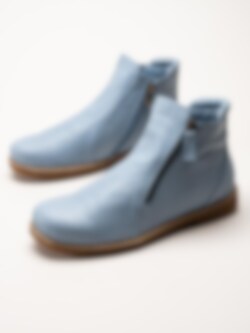 Ljusblå boots i skinn Bleu från Charlotte of Sweden. Riktigt sköna boots i mjukt skinn och dragkedja på båda sidor för att enkelt kunna ta av och på skorna. Innerfoder i textil och uttagbar stötdämpande innersula i skinn för en mjuk känsla. Fina boots till vårens aktiviteter!.