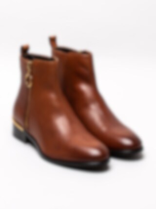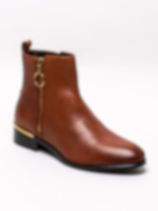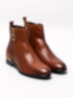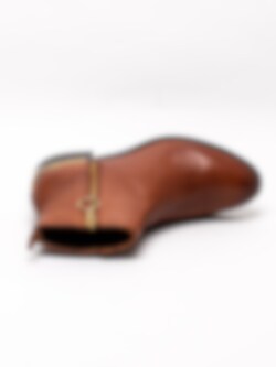 Bruna boots Fever Leather från Copenhagen Shoes i skinn. Snygg boots med fina gulddetaljer på klacken i dragkedjan och med en dragring. Mjuk innersula med latexskum för en riktigt skön komfort. Bred klack på ca: 3.5 cm för den klassiska looken. Bootsen du inte vill vara utan i höst.