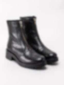 Svarta boots från Rosa Negra tillverkade i skinn. Härlig fleecefodrad insida med och dekorativ dragkedja längs med hela ovandel. Coola markerade skinnpartier horisontalt över front och en grov rejäl sula. En modell med rejäl attityd och mc-feeling. Kombinera avslappnat med en oversized skjorta och ett par urtvättade jeans. Ett måste för höstens garderob.