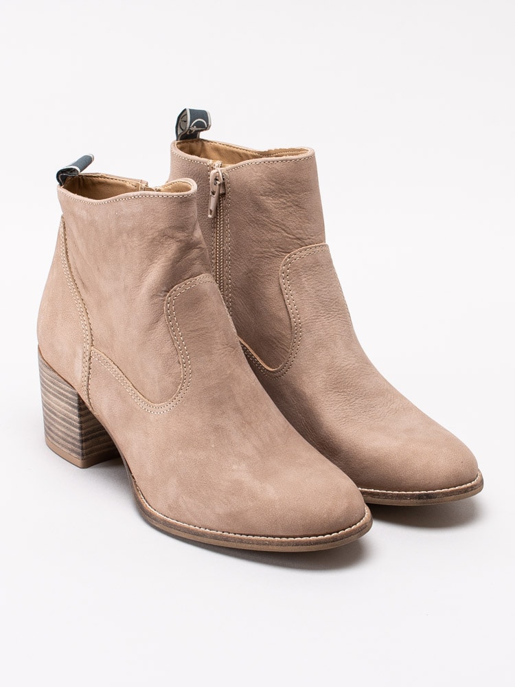 Beige boots från Tamaris tillverkade i nubuck. Unna dig ett par vårboots med klossklack i träimitation. Ljusa sömmar som detalj. Dragkedja på insidan som öppning. Foder i skinn och textil med innersula i syntet och textil. Klack på ca 6 cm. Beige yttersula med slät yta.