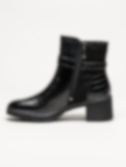 Modellen har en klackhöjd på ca 5 cm och platå på ca 2 cm, samt dragkedja på insidan för enkel av- och påtagning. Foder och innersula i textil ger komfort, och yttersulan i syntet ger stabilt grepp vid gång. En stilren och mångsidig modell som passar både till vardag och mer uppklädda tillfällen.