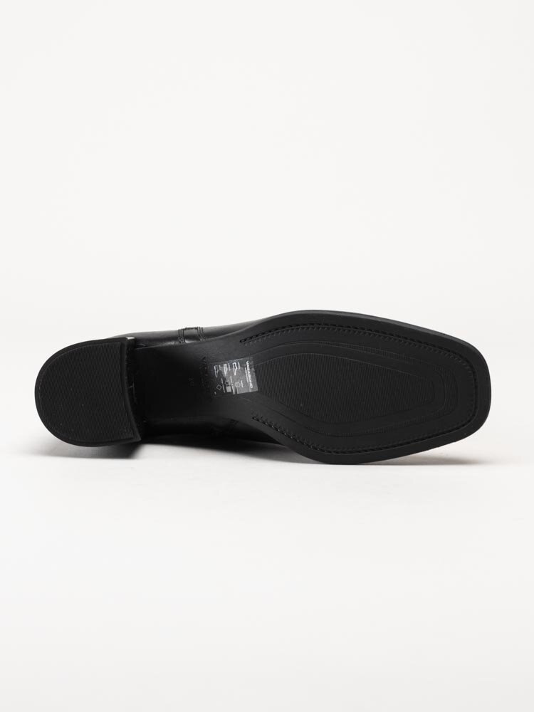 Svarta boots Stina i skinn från Vagabond. Stilren boots med en rundad tå-form och dressad design. Foder i textil och lätt vadderad innersula i kromfritt garvat skinn för skön komfort. Dekarotionskedja på utsidan och användbar kedja på insida. Klädd block-klack på ca 6 cm och nätt yttersula. Riktigt snygg dressad boots till city och festligare tillfällen!