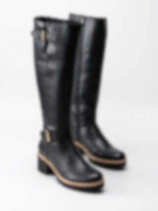 Svarta bikerstövlar i skinn med vattetät membran från Panama Jack.