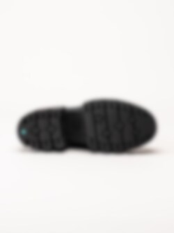 Svarta platåkängor i skinn från Timberland. Timberland Everleigh platåkängor med silverfärgade öljetter. Full grain leather av högsta kvalitet. Textilfodrade med ReBOTL återvunnet från pet-flaskor. Grov sula som samtidigt är följsam och mycket sköna. Mycket fina kängor som har mycket Timberland känsla med sina markerade sömmar och snygga stil.