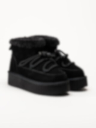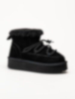 • Duffy - Svarta fodrade platåboots i mocka