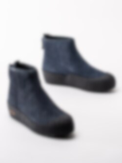 Mörkblå kängor Guard II från Bally. Klassisk känga i vattenbeständig kalvmocka med en grov gummisula i en stilren design. Gummisulan är framtagen med Vibram® Arctic Grip-tekniken som är speciellt konstruerad och utformad för att ge skon ett maximalt grepp på kalla, islagda eller snötäckta ytor. Skon är fodrad med shearlingpäls. Stängs baktill med dragkedja. Bally-logotyp på skons utsida.