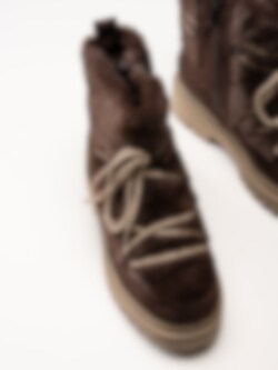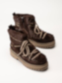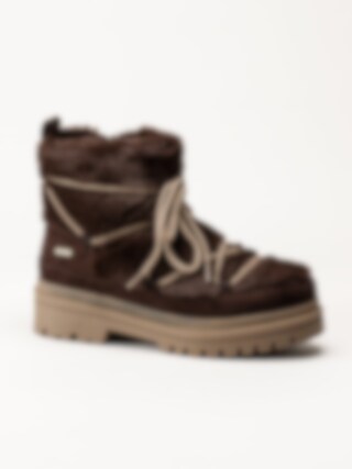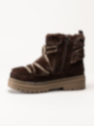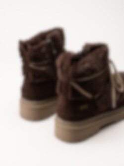 Fodret och innersulan är också i fuskpäls och bidrar till extra komfort, medan yttersulan i syntet ger stabilitet och bra grepp på olika underlag. Kängan är vattenavvisande för att hålla fötterna bekväma även under fuktiga förhållanden, en mysig och praktisk följeslagare under kalla dagar.