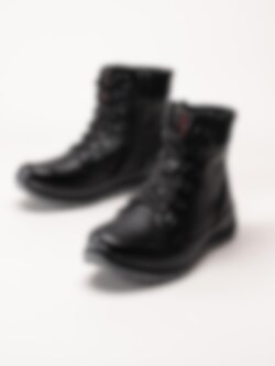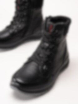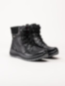 Svarta fodrade kängor i skinn från G Comfort. Ett par sköna och praktiska kängor för kallare väder. Foder och löstagbar innersula i textil. Yttersula i gummi med en platåhöjd på cirka 3 cm. Skorna är utrustade med en TEX membran och innersulan har bekväma massage pluppar för de längre promenaderna.