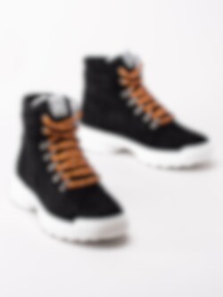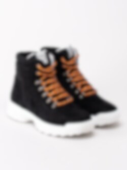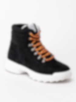 Happy Shoes - World Hike - Svarta höstkängor med orange snörning