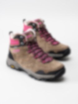 Ljusbruna kängor i mocka från Hi-Tec. Utrustad med waterproof membran och vibram. Slip on snörning för enklare på- och avtagning.