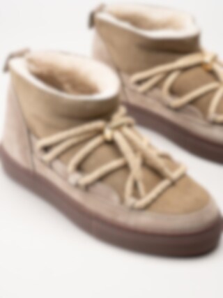 Inuikii - Classic Low - Beige låga fårskinnsfodrade boots i mocka