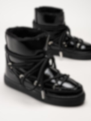 Inuikii - Full leather naplack - Svarta fårskinnsfodrade boots i lackskinn