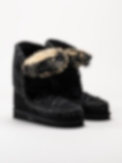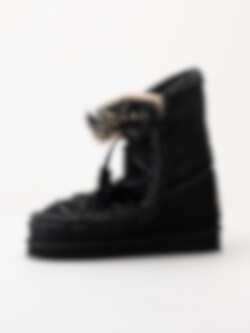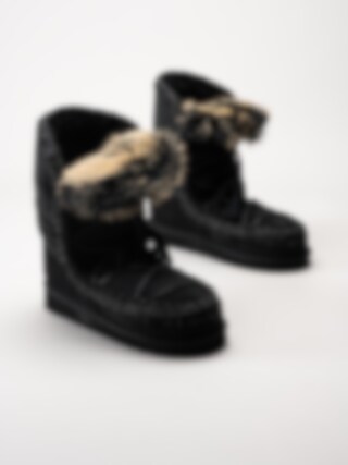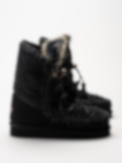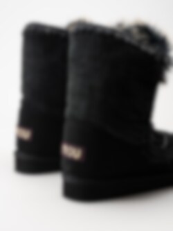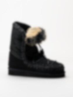 Svarta fodrade vinterstövlar Eskimo Dream Catcher i mocka från Mou Eskimo. Handgjorda vinterskor med varmt skönt fårskinnsfoder, lädertofsar och detaljer i äkta päls. Dessa skor är idealiska för vinterförhållanden och håller fötterna varma under kalla dagar. Trendiga vinterstövlar som passar lika bra till avslappnade jeans som till klänningar.