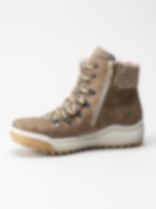 Beige fodrade pjäxkängor från Rieker. Kängan har Rieker-Tex som gör den vattenavvisande och du håller dig torr om fötterna. Med ett mjukt ullfoder och innersula i filt för bästa komfort. Dragkedja på insidan som gör det lätt att komma i och ur och snörning för perfekt passform. Fina detaljer som ger kängan sin snygga karaktär. Riktigt bra känga för kallare temperaturer.