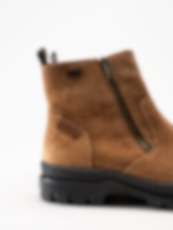 Kängorna har dubbla dragkedjor som gör dem enkla att ta av och på, samtidigt som den antistress Rieker-teknologin ger en lätt och följsam känsla under hela dagen. Yttersulan i gummi ger stabilitet och bra grepp på varierande underlag. För bästa hållbarhet rekommenderas regelbunden impregnering av mockan. Om broddarna slits ut efter några säsonger går det att köpa nya delar - observera då att välja samma färg då systemen kan variera något. En pålitlig och varm vinterkänga som håller fötterna torra, varma och stabila även under hala dagar.