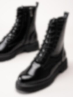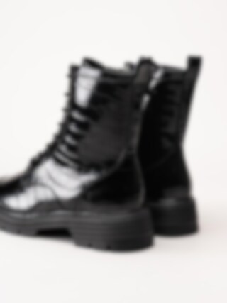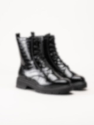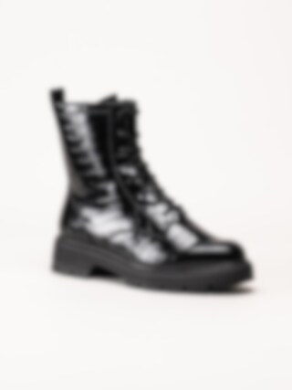Tamaris - Svarta lackkängor med krokomönster