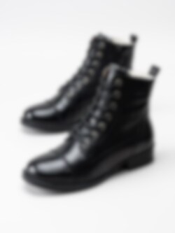 Ten Points - Pandora - Svarta ullfodrade kängor i skinn