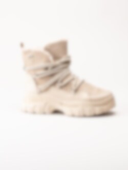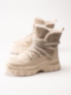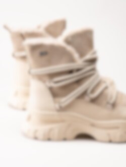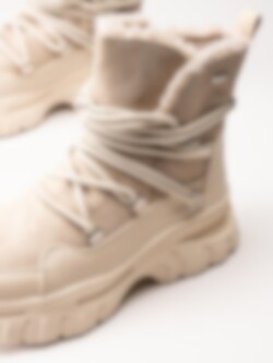 Beige vattentåliga kängor från Duffy. Foder och innersula i fuskpäls. Utrustade med vattenavvisande membran som andas och håller dina fötter torra och fräscha. Yttersula i syntet med en klackhöjd på ca 5.5 cm och platåhöjd på ca 4.5 cm.