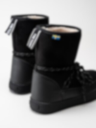 Svarta fodrade vinterkängor Aspa i syntet från Tretorn. Varma, vattentäta och sköna stövlar med premiumkänsla. Mycket praktiska under slaskiga förhållanden under vintern. Bred passform men samtidigt ganska små i storlekarna. Underhållsfria, ta endast ut innersulan och vädra när dom blir fuktiga invändigt.