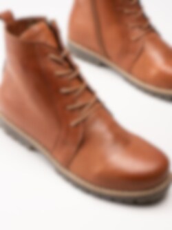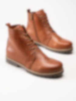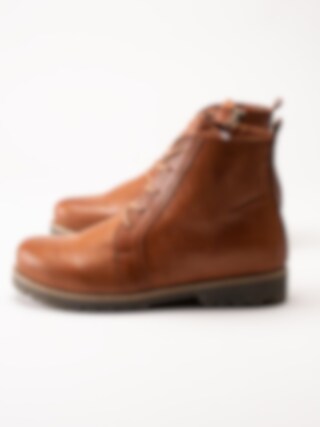 Ljusbruna kängor i skinn från Charlotte of Sweden. Snörparti med 5 hål för perfekt passform. Dragkedja på insidan för smidig av- och påtagning. Foder och löstagbar innersula i skinn. Plösen är vadderad högst upp mot benet för extra komfort. Yttersula i gummi med bra mönster och ett bättre grepp.