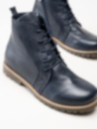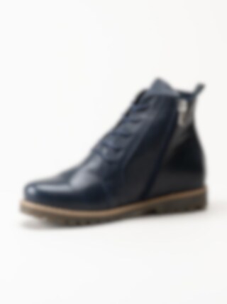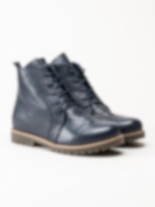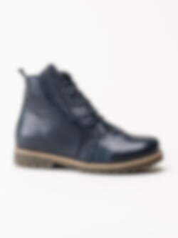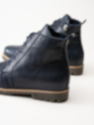 Mörkblå kängor i skinn från Charlotte of Sweden. Snörparti med 5 hål för perfekt passform. Dragkedja på insidan för smidig av- och påtagning. Foder och löstagbar innersula i skinn. Plösen är vadderad högst upp mot benet för extra komfort. Yttersula i gummi med bra mönster och ett bättre grepp.