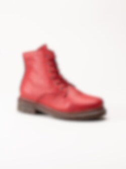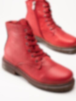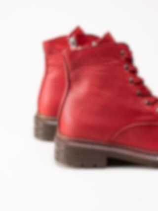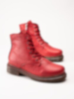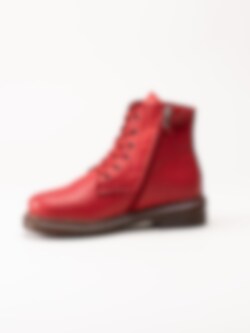 Röda bikerkängor i skinn från Charlotte of Sweden. Innerfoder och uttagbar innersula i skinn för en bekväm och mjuk känsla. Snörparti med 6 hål för perfekt passform och dragkedjor på insidan för enkel på- och avtagning. Yttersula i gummi för bra grepp. Tuff känga i en häfftig röd färg som är riktigt mjuk och skön.