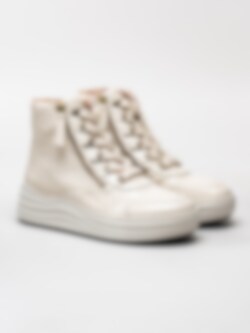 Ljusbeige kängor tillverkade i lackskinn från Gabor.